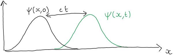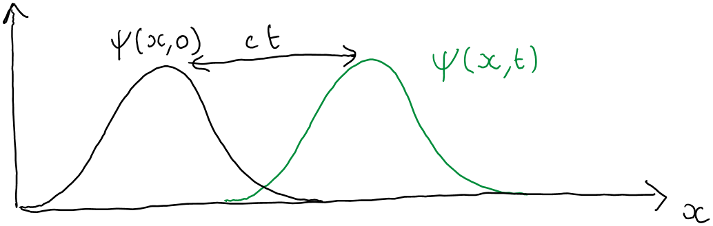 In this case, the wave packet keeps the same shape over time and just moves to the right with velocity $c$, as illustrated below.